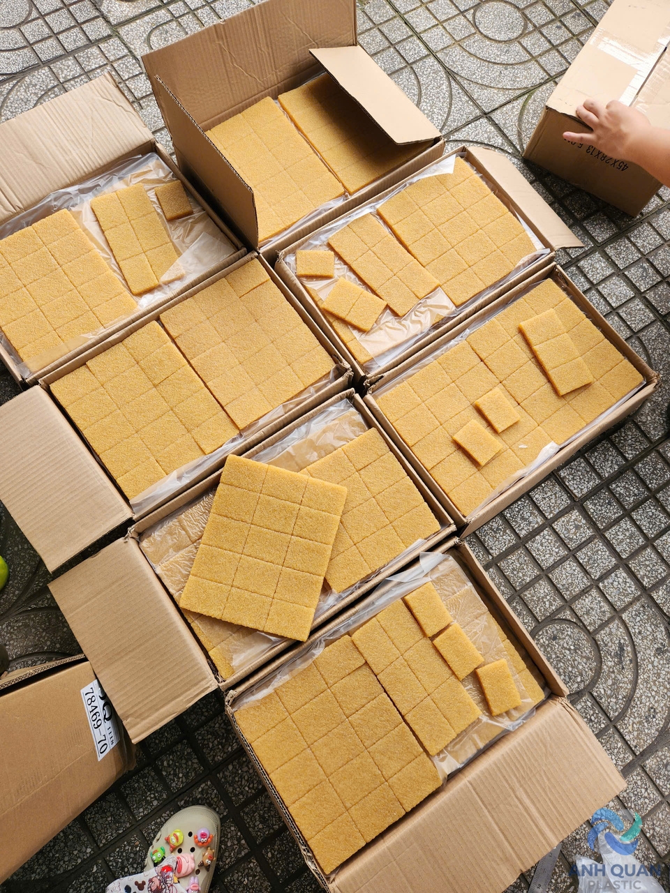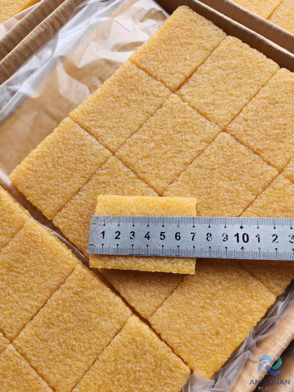 1 THÙNG 10KG , CÓ BÁN LẺ 1KG Dùng để chùi keo còn sót lại trên giày, dép khi vừa mới dán keo xong. Kích thước: 5cm x 7cm/miếng nhỏ. Độ dày: dao động từ 9mm đến 10mm Quy cách đóng gói: 36 miếng nhỏ/tấm lớn 360 miếng nhỏ = 10kg/thùng