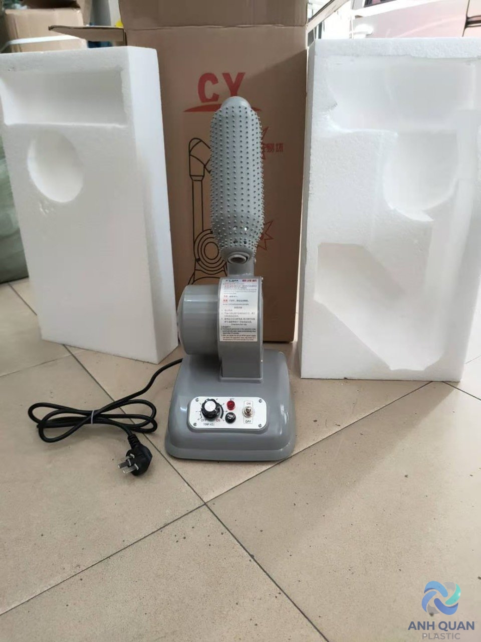 quy trình sử dụng : trước khi cắm điện , công tắc off , núm chỉnh độ trả về 0 , sau đó cắm điện , công tắc on , vặn núm nhiệt độ , dùng xong vặn núm trả nhiệt về 0 , công tắc off , để quạt tản nhiệt máy nguội, rồi hãy ngắt nguồn điện , không để máy chạy lâu vì dễ hỏng mạch Loại máy này thích hợp để hoàn thiện da giày trước khi đóng gói, có thể đốt cháy các đường chỉ thừa trên trên sản phẩm, giúp da giày đẹp hơn và nâng cao chất lượng sản phẩm. Thông số kĩ thuật : – Nguồn điện : 220 V – Công suất sợi đốt : 1 KW – Công suất máy : 40 W – Kích thước : 330 x 230 x 290 cm Đặc trưng: 1. Điều chỉnh nhiệt độ tự động, 2. Tự động bảo vệ: sau khi tắt máy sẽ tiếp tục thổi hơi lạnh trong 5 phút để tản nhiệt; 3. Tự động tắt máy, Máy sấy V6 có hiệu suất ổn định , chất lượng đáng tin cậy , vận hành thuận tiện và an toàn , có lợi cho việc nâng cao hiệu quả sản xuất của công ty bạn . Nó được sử dụng rộng rãi trong sản xuất túi xách, đồ da, làm thắt lưng, sản phẩm giấy, hành lý, điện tử, nhựa, đóng giày, chế biến sản phẩm da và các ngành công nghiệp khác. Lưu ý: Không ngắt nguồn điện sau khi sử dụng, quạt gió sẽ tự động tắt sau khi nguội Lưu Ý : Model máy có thể khác nhau về thiết kế và màu sắc tùy theo từng lô hàng . clip test máy : https://youtu.be/COzFwC_zxjQ