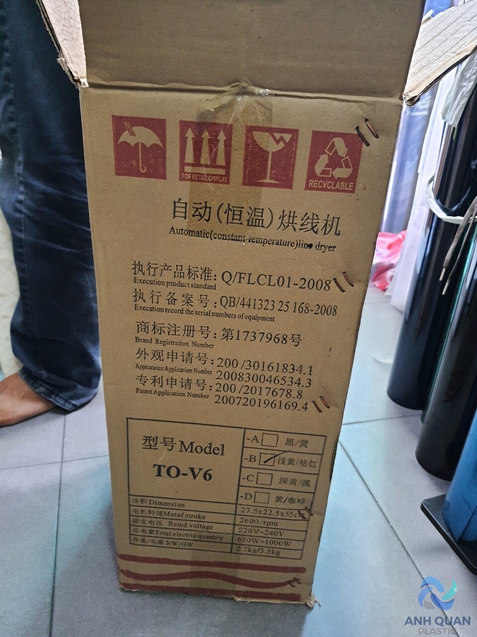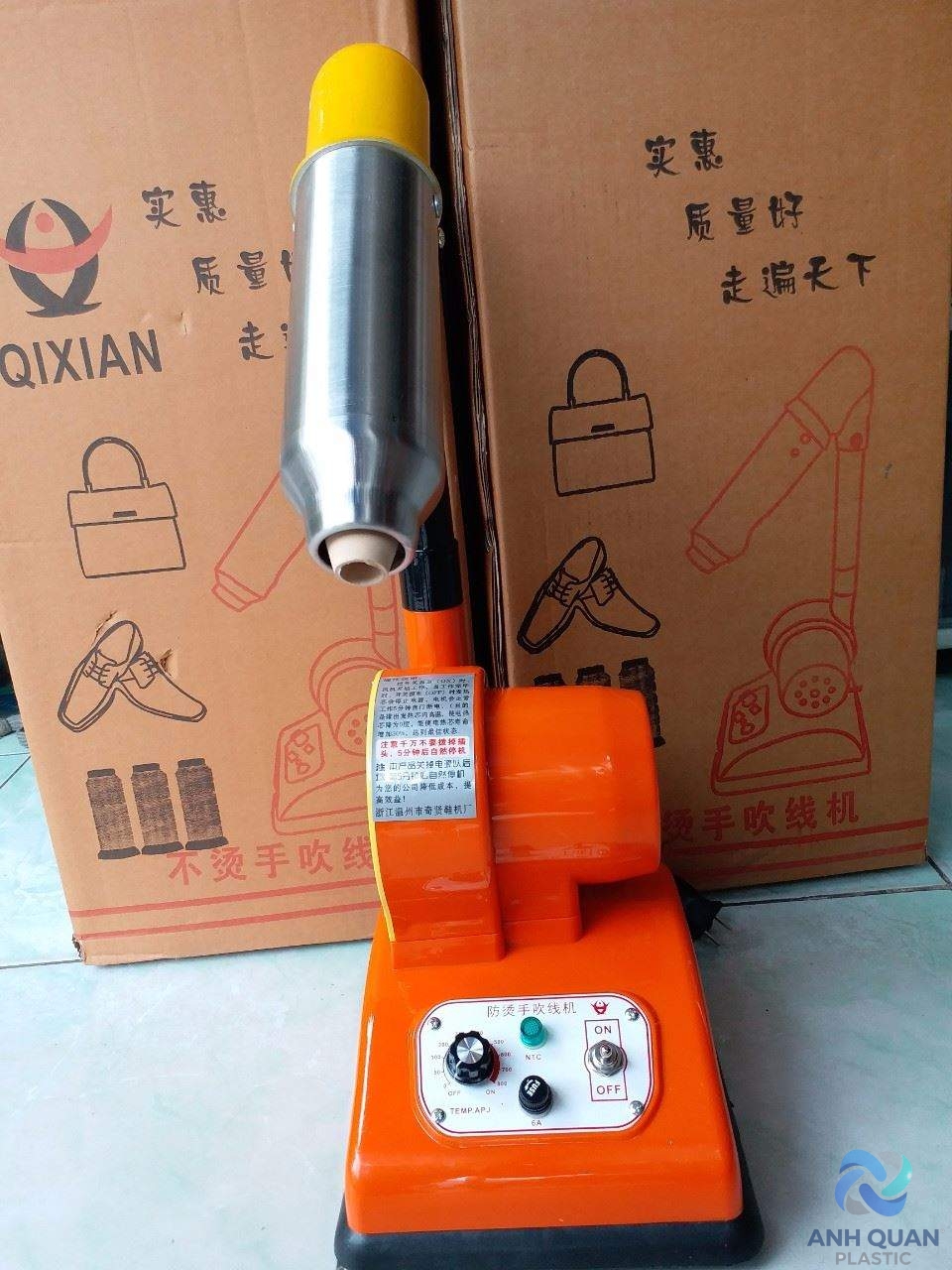 quy trình sử dụng : trước khi cắm điện , công tắc off , núm chỉnh độ trả về 0 , sau đó cắm điện , công tắc on , vặn núm nhiệt độ , dùng xong vặn núm trả nhiệt về 0 , công tắc off , để quạt tản nhiệt máy nguội, rồi hãy ngắt nguồn điện , không để máy chạy lâu vì dễ hỏng mạch Loại máy này thích hợp để hoàn thiện da giày trước khi đóng gói, có thể đốt cháy các đường chỉ thừa trên trên sản phẩm, giúp da giày đẹp hơn và nâng cao chất lượng sản phẩm. Thông số kĩ thuật : – Nguồn điện : 220 V – Công suất sợi đốt : 1 KW – Công suất máy : 40 W – Kích thước : 330 x 230 x 290 cm Đặc trưng: 1. Điều chỉnh nhiệt độ tự động, 2. Tự động bảo vệ: sau khi tắt máy sẽ tiếp tục thổi hơi lạnh trong 5 phút để tản nhiệt; 3. Tự động tắt máy, Máy sấy V6 có hiệu suất ổn định , chất lượng đáng tin cậy , vận hành thuận tiện và an toàn , có lợi cho việc nâng cao hiệu quả sản xuất của công ty bạn . Nó được sử dụng rộng rãi trong sản xuất túi xách, đồ da, làm thắt lưng, sản phẩm giấy, hành lý, điện tử, nhựa, đóng giày, chế biến sản phẩm da và các ngành công nghiệp khác. Lưu ý: Không ngắt nguồn điện sau khi sử dụng, quạt gió sẽ tự động tắt sau khi nguội Lưu Ý : Model máy có thể khác nhau về thiết kế và màu sắc tùy theo từng lô hàng . clip test máy : https://youtu.be/COzFwC_zxjQ