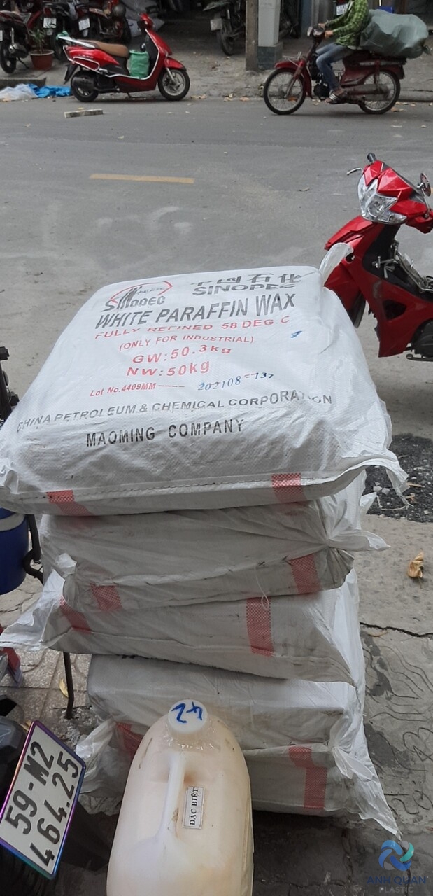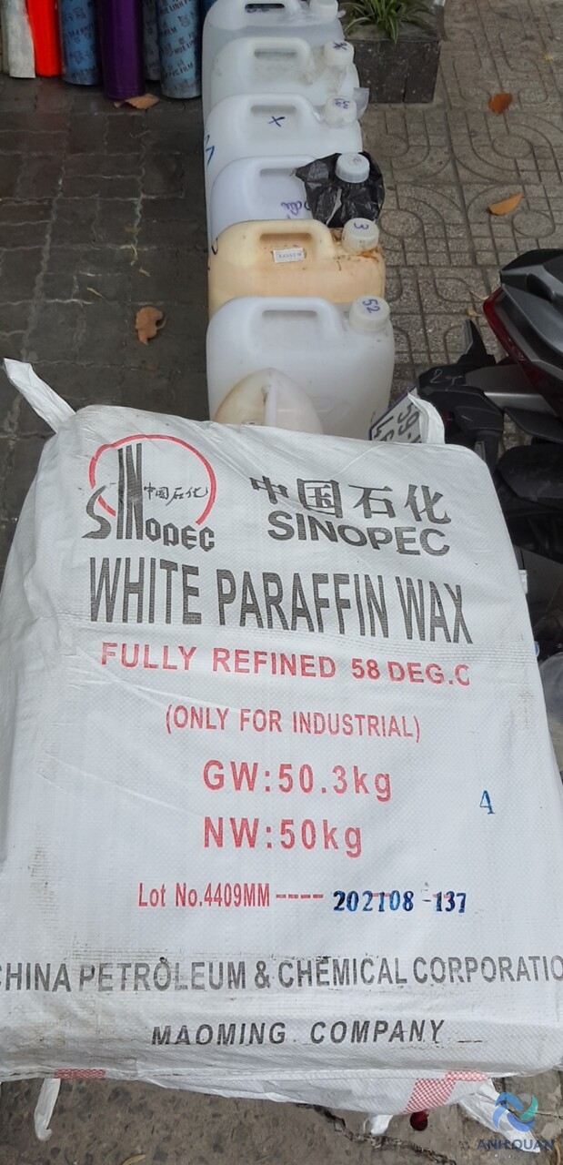 ỨNG DỤNG LÀM ĐÈN CẦY, BÔI TRƠN, VV,.VV.VV……VV CÓ THỂ NẤU NÓNG CHẢY VÀ TẠO HÌNH Sáp Paraphin – Fully Refined & Semi Refined Paraffin wax Mô tả : Sáp paraffin có mầu trắng hoặc màu trắng hơi ngả vàng, không mùi, dạng khối hoặc hạt. Sáp paraffin có 2 loại chính là : Loại đã qua xử lý 1 nửa (paraffin wax semi refined) có độ tinh dầu thấp 1.5% đến 2.5% và đã qua xử lý hoàn toàn (paraffin wax refined fully) có độ tinh dầu thấp 0.5% đến 0.8%. Ứng dụng : – Sản xuất nến. – Tạo lớp phủ cho các loại giấy hay vải sáp. – Tạo lớp phủ cho nhiều loại phó mát cứng, chẳng hạn phó mát Edam. – Tạo các mẫu trong nghiên cứu thuộc lĩnh vực mô học. – Chất đẩy rắn cho các loại tên lửa lai ghép. – Gắn xi cho bình, chai, lọ. – Trong da liễu học, nó được dùng làm thuốc làm mềm (giữ ẩm) – Được dùng cho các ván lướt sóng như là một thành phần của loại sáp dành cho ván lướt sóng. – Thành phần chủ yếu của sáp trượt, dùng trong các xki và ván trượt tuyết. – Trong vai trò của phụ gia thực phẩm, chất tạo độ bóng có số E bằng E905 chính là parafin cấp thực phẩm. – Các thử nghiệm parafin được sử dụng trong pháp y để phát hiện các hạt thuốc súng còn trong tay của người bị tình nghi…. Nhãn hiệu : SINOPEC Nước sản xuất : China Đóng gói : PP/PE ; 50kg